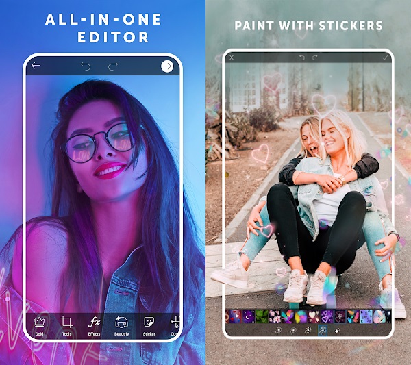 • Get a stunning makeover with Beautify tools: hair color changer, makeup stickers & more.